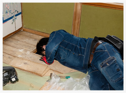 天井裏や床下を動画撮影し、お客様に現状をご確認いただいた上で、必要なお見積りをさせていただきます。